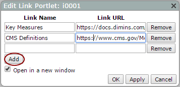 4. To Closedadd another link, click Add, and then repeat steps 6 and 7. You can do this as many times as you want.