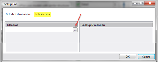 To add the sample lookup file, click L across from the Salesperson dimension to open the