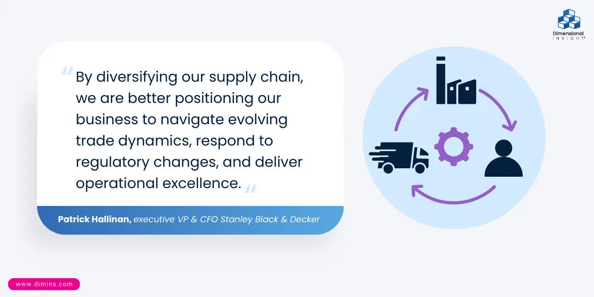 Stanley Black & Decker offers an example of an organization looking to its supply chain data to help it meet its financial goals. The world’s largest toolmaker credited its enhanced supply chain efficiencies for the third quarter success it has had, and the continued work in that area is a large part of its goals moving forward. The company has minimized the amount of supply that has come from China, moving some of its operations to Mexico, with plans to decrease the levels of sourcing from China even more by the end of 2026. “By diversifying our supply chain, we are better positioning our business to navigate evolving trade dynamics, respond to regulatory changes, and deliver operational excellence,” Patrick Hallinan, executive VP & CFO, said on an earnings call in early November.