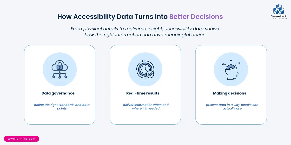 - Making decisions: Analytics is all about using data to make better decisions. When it comes to accessibility, the data is being used to figure out where someone can go without facing obstacles. In the business world the data can help decision-makers, but only if the information can be presented in a way that makes sense. That’s where an analytics solution comes in.