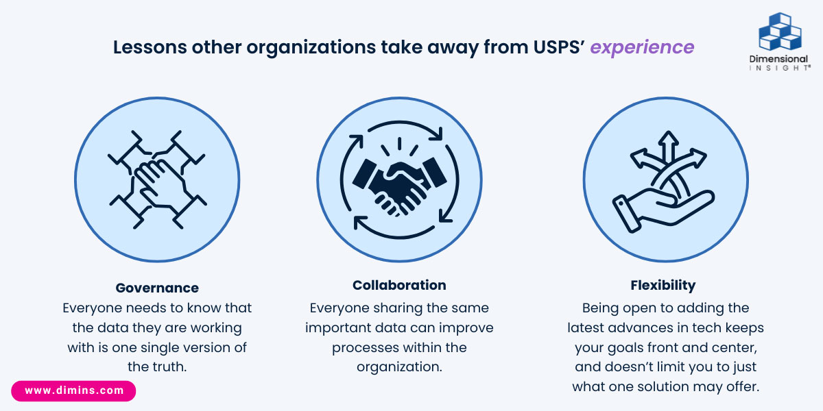 While the USPS may have taken a longer journey than others towards using its data more effectively, the way it has gone about its data transition could set a path for other organizations looking to make the same kind of transformation. Here are three key takeaways: