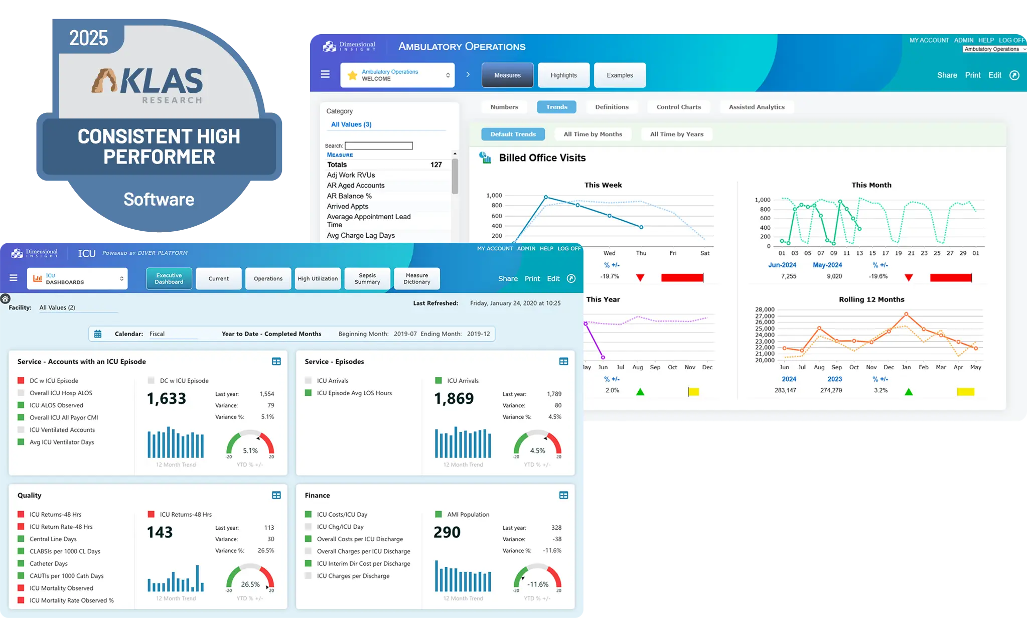 - With over a decade of KLAS recognition, Dimensional Insight continues to be a trusted partner for healthcare leaders seeking clarity and measurable outcomes.