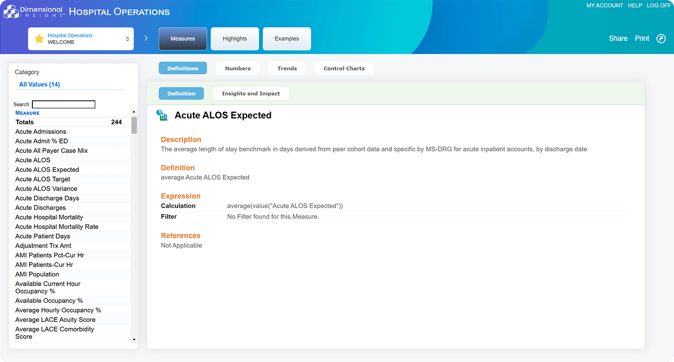 Over 200 built-in measures spanning utilization, quality, throughput, and financials. All metrics are fully explorable—down to the department, shift, or patient group.