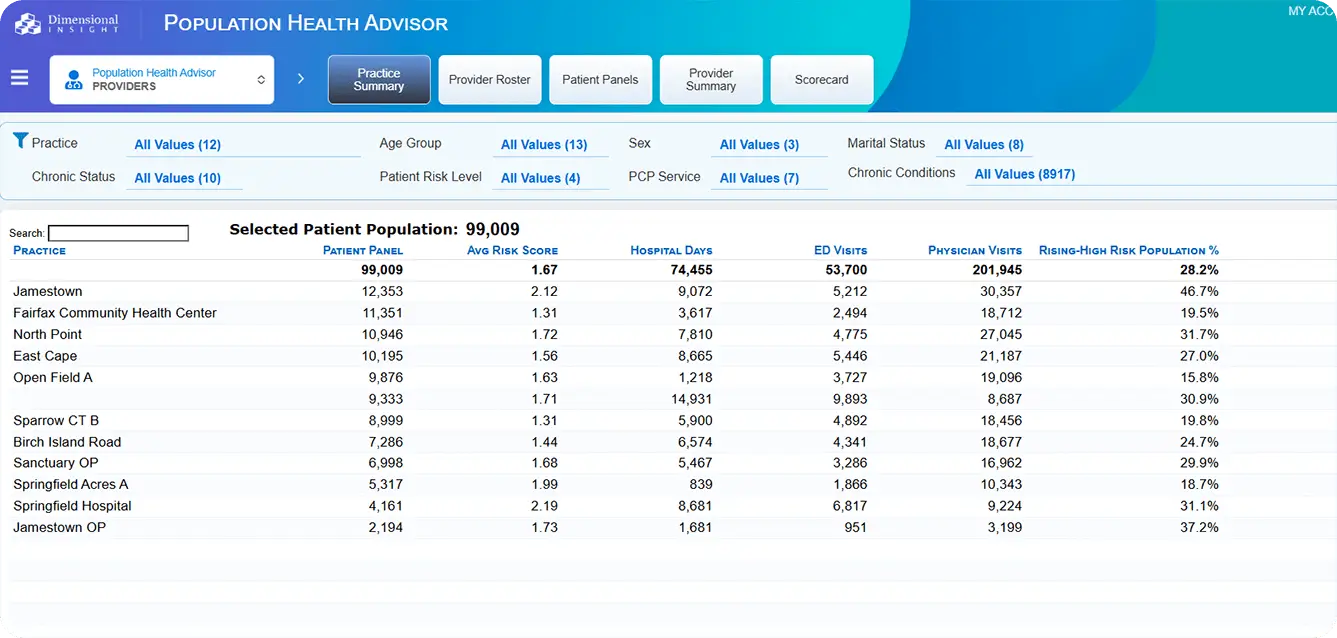 Population Health Advisor delivers 150+ KPIs out of the box.