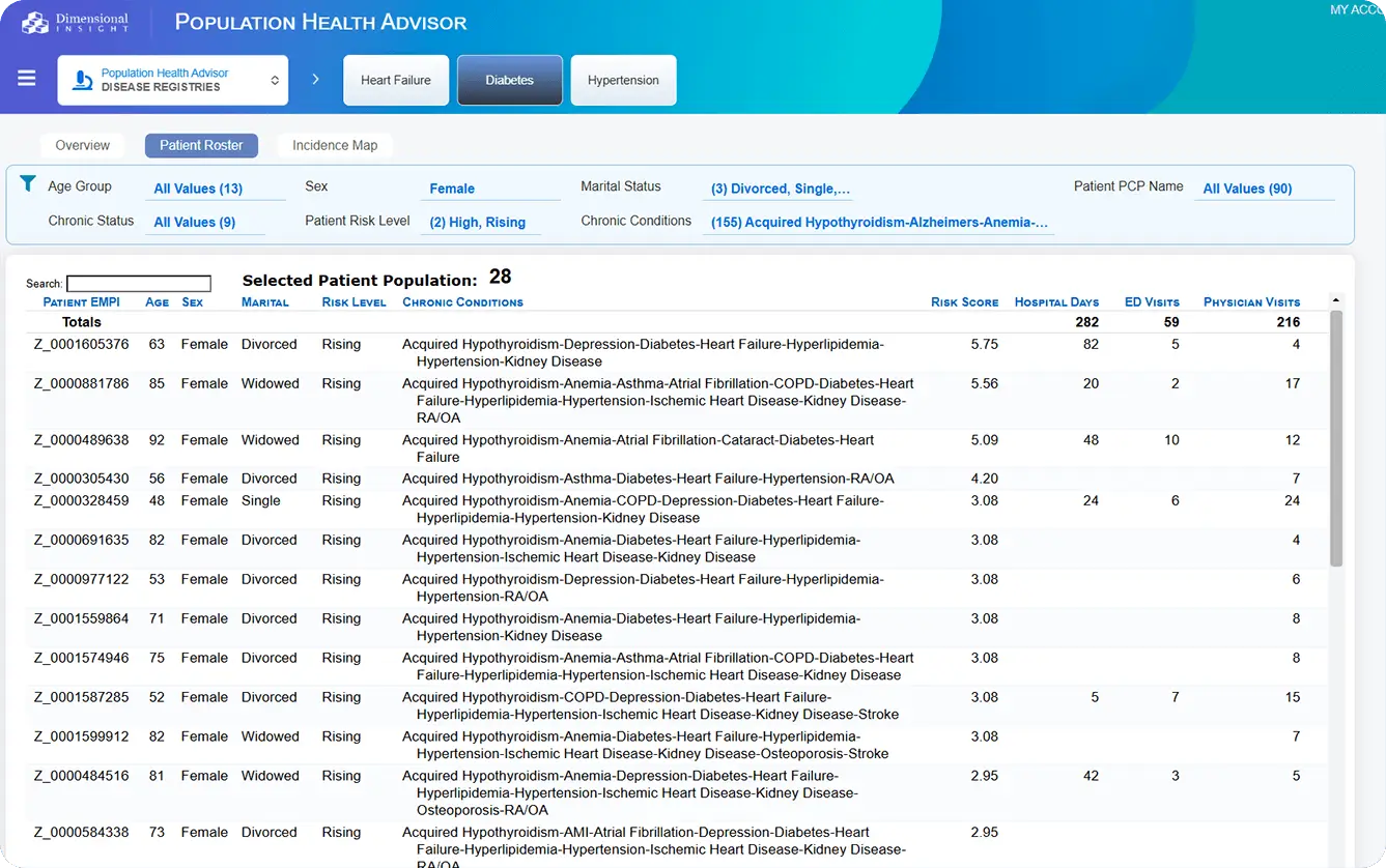 Population Health Advisor runs on Dimensional Insight’s Diver Platform, ensuring consistency across your analytics ecosystem. It integrates with: