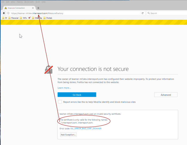However, if you are using a self-generated certificate, when a user accesses DivePort for the first time, the browser presents an error message indicating that the certificate is not from a trusted CA, and the user must verify its authenticity before proceeding. Most browsers allow one-time acceptance of the certificate. Otherwise, users must accept the certificate each time they access DivePort.