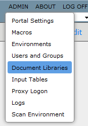 On the DivePort title bar, select ADMIN > Document Libraries.