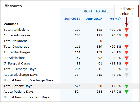 NOTE: If the data value is null, the indicator column for that value renders blank