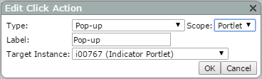 | Label | Specifies the label that displays in the click action context menu. The default is Pop-up. |