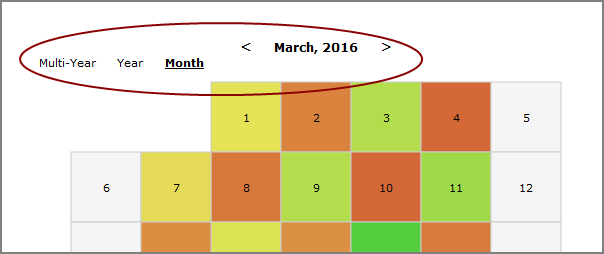 - Click a different time view: Multi-year, Year, or Month.