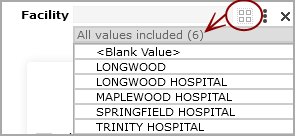 By default, a flex QuickView appears as a closed list with an expansion arrow next to it. Closed flex QuickView.Click the arrow to open the list. To select values, click the space to the left of the value name. A check mark indicates selected values.