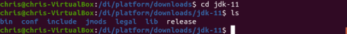 Press Enter to unpack the JDK package and create the jdk-11 subdirectory.