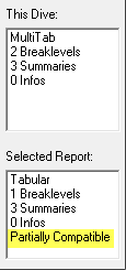 - Partially Compatible—Tabular display types are compatible but the number of breaklevels are different.