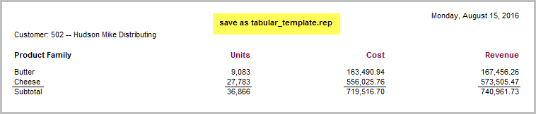 save a simple tabular as a report template called tabular_template.rep.