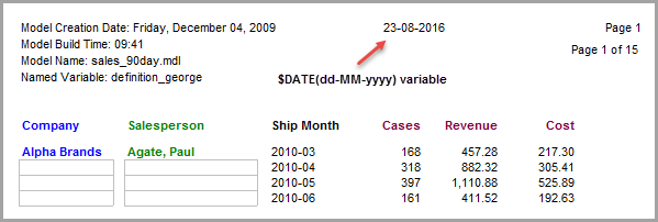 - $DATE — Inserts the current system date, for example, Tuesday, August 23, 2020. You can reformat the date by entering an argument in parentheses, such as dd-MM-yyyy, after the variable.