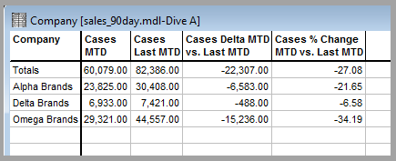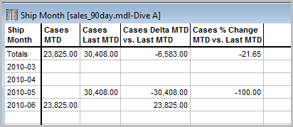 display a dive window with period comparison column headings. -
