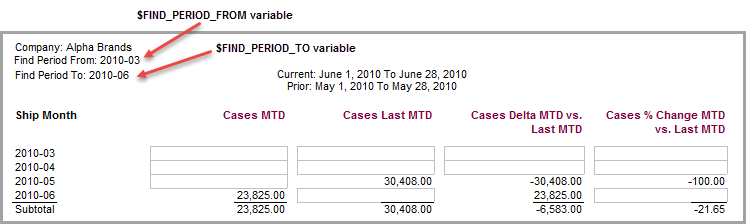 - Type the following text before the variable name: Find Period From: .