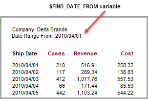 - Type the following text before the variable name: Date Range From: .
