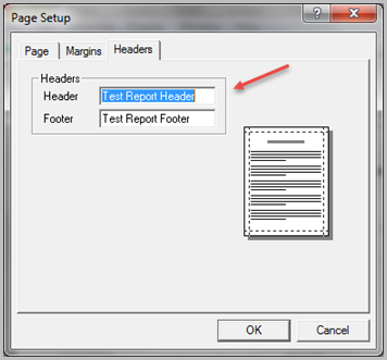 - Click the Headers tab and enter Test Report Header and Test Report Footer in the