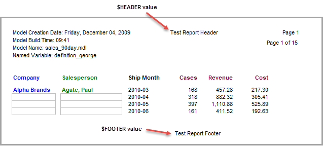 Complete the following steps to add the $HEADER and $FOOTER variable values to a report.