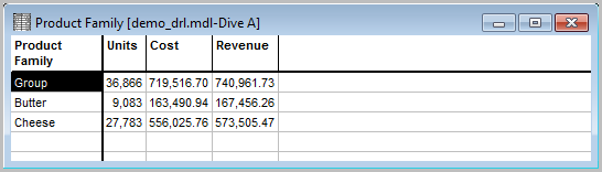 the dive window, select the Butter and Cheese dimension values, and then click the Group icon. -