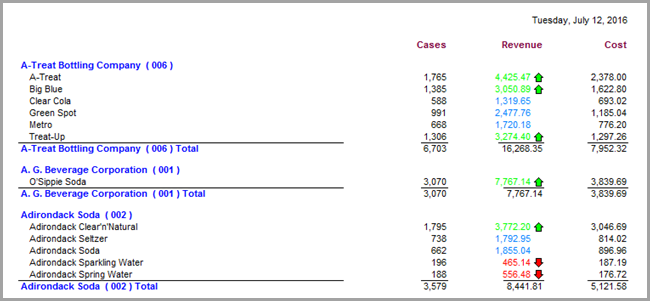 display the report with revenue column indicators.