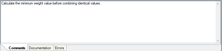 The Comments, Documentation, and Errors pane is split into three tabs: