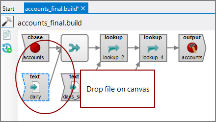 You can drag an appropriate file from the Explorer pane onto the build flow canvas. It becomes an input to the Concat object.
