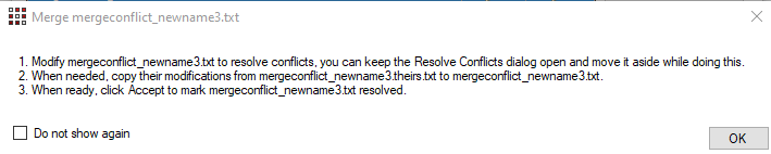 Merge Instructions window opens.NOTE: If you select Do not show again, you can see the merge instruction dialog box again as described in Setting Workbench Preferences.