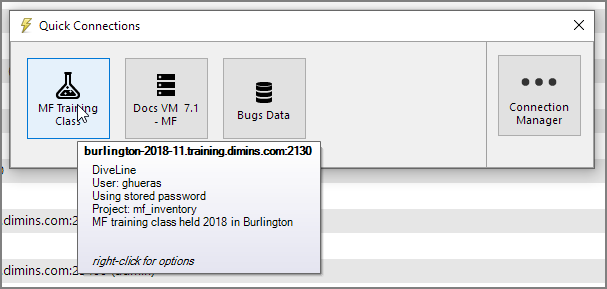 Quick Connections Dialog
