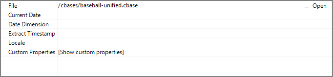 | Date Dimension | Specifies the name of the date dimension. This dimension is used in time-series calculations and Analysis Tables. |