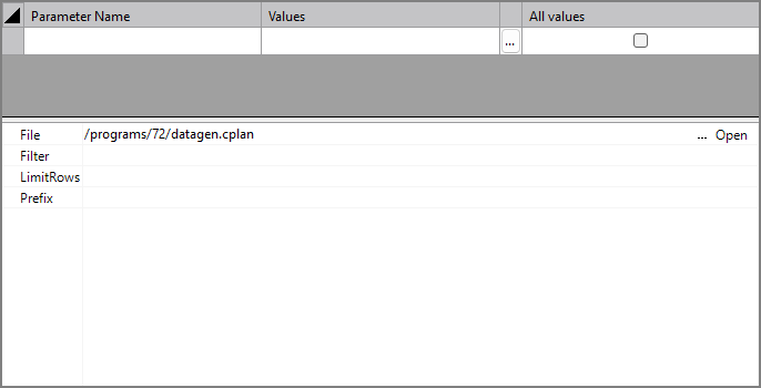 | Values | Defines a value or series of values to pass to the source file. You can type values as a semicolon delimited list in this field or one-by-one by clicking the Edit values ellipses |