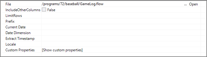| Include Other Columns | If true, any columns found in the input that are not specified are included. For information about the flow script tag, see include-other-columns. |