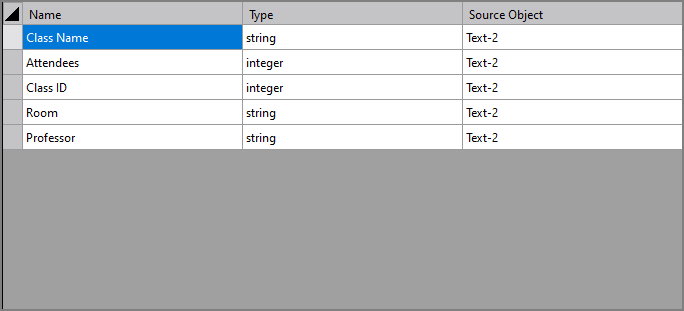 | Name | Displays the name of each input column. This attribute is read-only. |