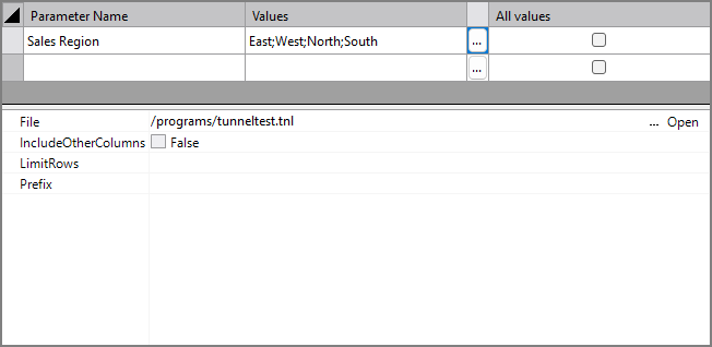 | Values | Defines a value or series of values to pass to the source file. You can type values as a semicolon delimited list in this field or one-by-one by clicking the Edit values ellipses |