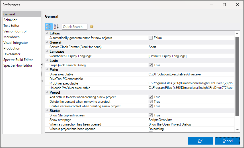 • Misc—Set whether or not to have the cBase open directly in ProDiver when a Spectre Build script successfully completes (defaults to False), or reaches an input limit set for the build.