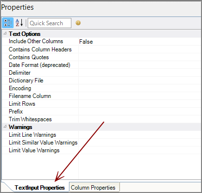 Text Input Properties Pane
